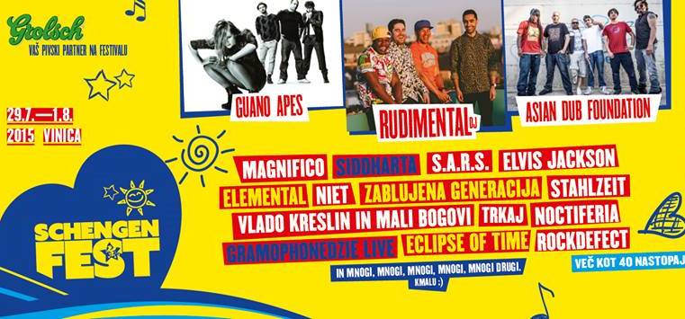 Osmo po redu izdanje Schengenfesta održat će se na već poznatoj lokaciji u Vinici u Beloj Krajini u Sloveniji, a ove godine trajat će puna četiri dana, od srijede 29. srpnja do subote 01. kolovoza 2015. Osim izvrsnog i raznolikog line up-a, ovogodišnje izdanje festivala donosi brojne novitete i povlastice vezane za samo kampiranje, jeftinije cijene ulaznica, još razvijeniju trgovinu i bogat popratni program za druženje i zabavu za posjetitelje iz cijelog svijeta.